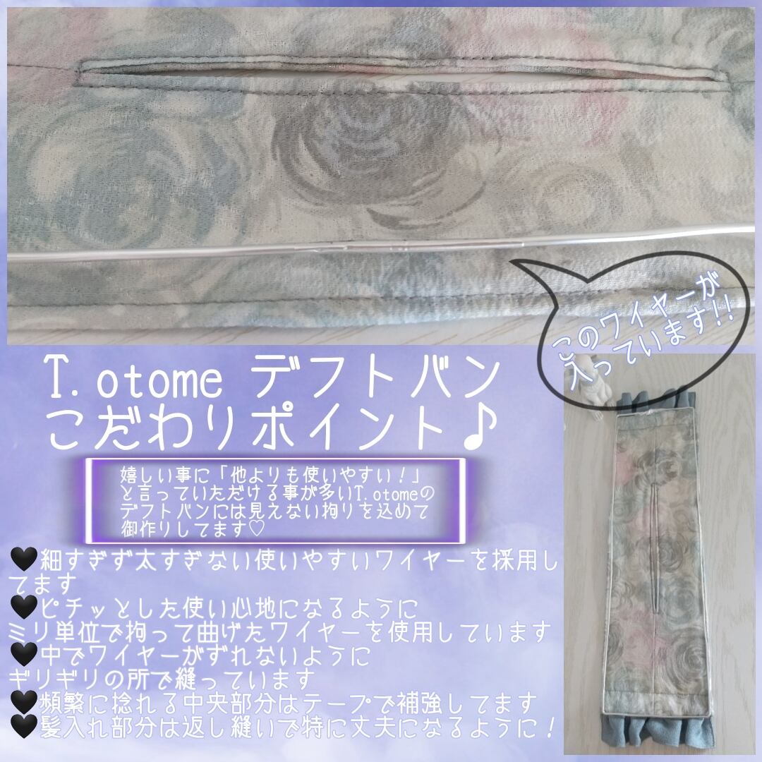 T.otomeのデフトバンはファブリック生地やキモノの古布を使用し、両サイドにはフリルがついています♪